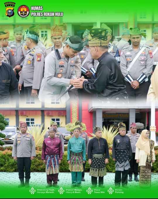 Lebih lanjut disampaikan, penggunaan tanjak Unak Serantau ini akan menjadi identitas rutin bagi personel Polres Rokan Hulu dan wajib dikenakan setiap hari Jumat sebagai bentuk pelestarian budaya serta implementasi nilai-nilai adat dalam kehidupan kedinasan.