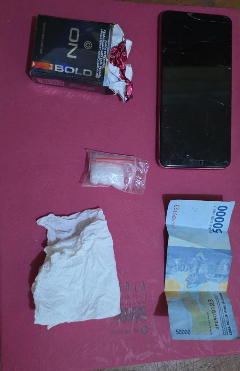 Dalam penangkapan tersebut, Polisi turut mengamankan sejumlah barang bukti berupa satu paket sabu dengan berat kotor total 5,73 gram, satu unit handphone Oppo warna merah, uang tunai Rp.50.000, serta satu unit sepeda motor Honda Vario warna putih hitam yang digunakan pelaku.