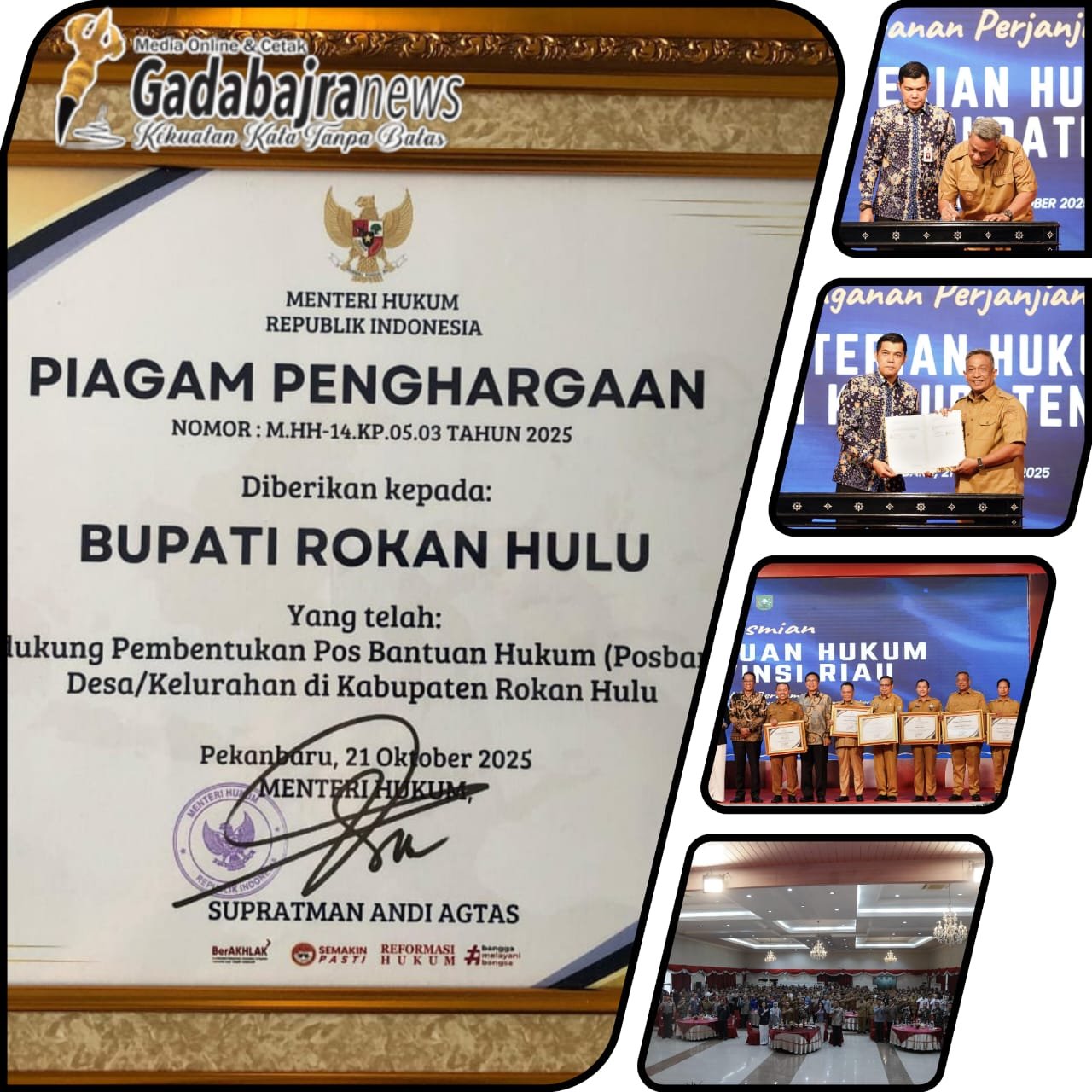 PEKANBARU,(RIAU) Gadabajranews.com – Komitmen kuat Pemerintah Kabupaten Rokan Hulu (Rohul) dalam memperluas akses keadilan bagi masyarakat kembali membuahkan penghargaan bergengsi.