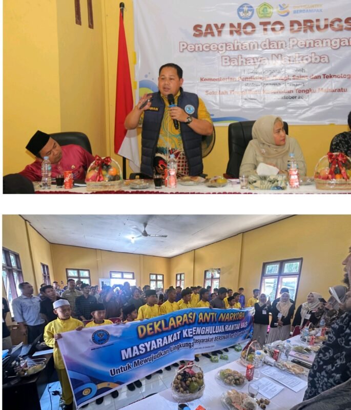 ROKAN HILIR, GadabajraNews.com – Badan Narkotika Nasional Kota (BNNK) Pekanbaru terus memperluas jangkauan edukasi bahaya narkoba hingga ke pelosok daerah. Kali ini, Kepala BNNK Pekanbaru Kombes Pol Dr. Wawan, S.H., M.H. memimpin langsung kegiatan Sosialisasi Bahaya dan Ancaman Narkoba sekaligus Deklarasi Anti Narkoba di Gedung Serba Guna Kepenghuluan Rantau Bais, Kabupaten Rokan Hilir, Jumat (10/10/2025).