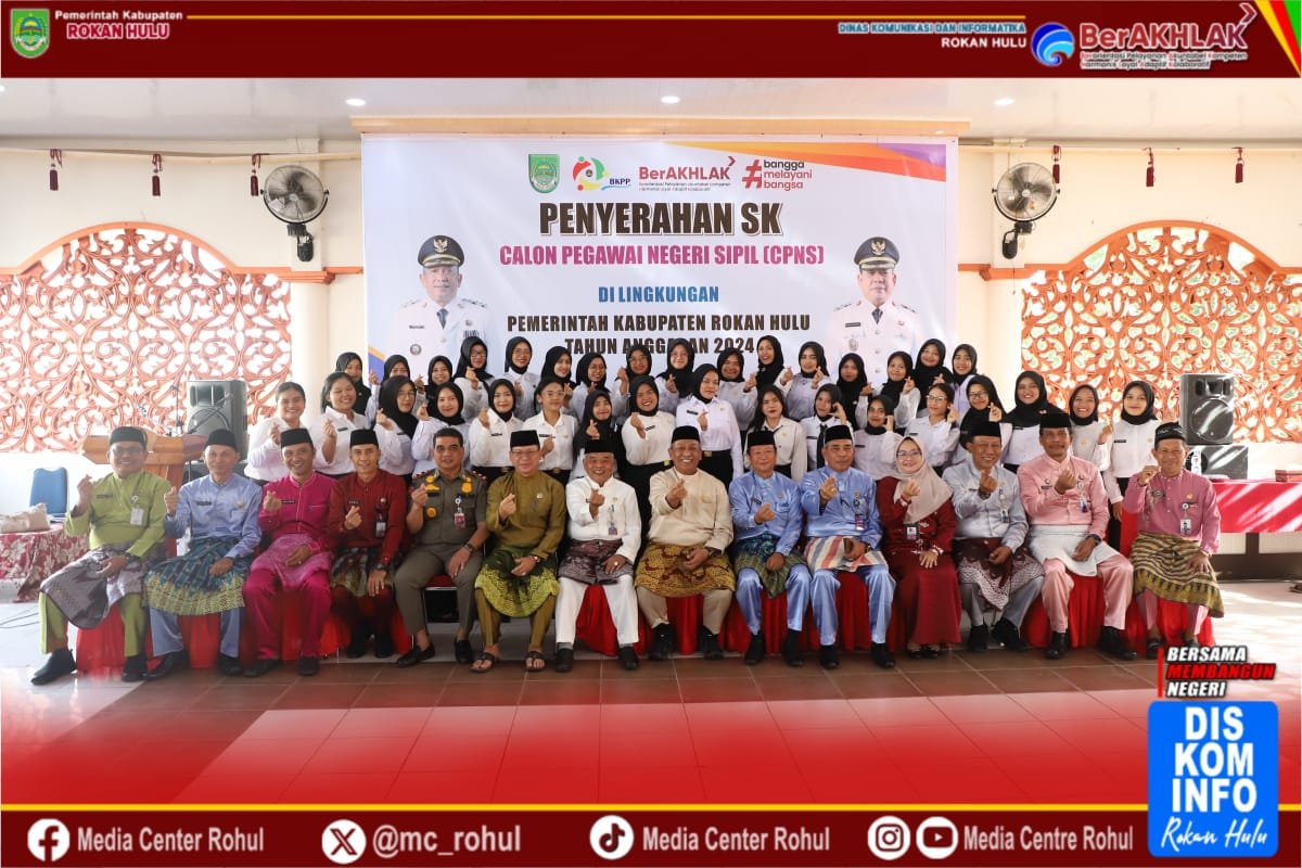 ROHUL, GadabajraNews.com Pemerintah Kabupaten (Pemkab) Rokan Hulu (Rohul) gelar kegiatan Penyerahan SK Calon Pegawai Negeri Sipil (CPNS) Tahun Anggaran 2024, Pendopo Rumah Dinas Bupati Rohul, Jumat (23/05/2025).
