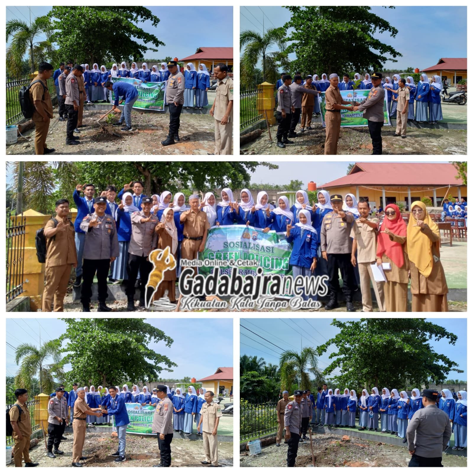 RAMBAH HILIR, (ROHUL) Gadabajranews.com – Dalam rangka mendukung dan menyukseskan Program Green Policing Kapolda Riau, Kapolsek Rambah Hilir bersama personel melaksanakan kegiatan sosialisasi dan penanaman bibit pohon di SMAN 1 Rambah Hilir, Senin (13/10/2025) sekitar pukul 08.30 WIB.
