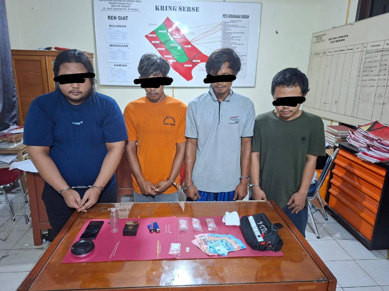 Empat Pengedar Narkoba Diciduk Polsek Tandun, Barang Bukti 8,86 Gram Sabu Disita