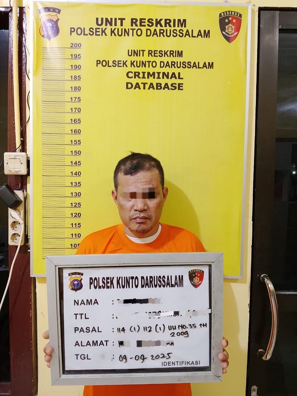 Kanit Reskrim Polsek Kunto Darussalam, IPDA Sudarma Wijaya.,S.H memimpin tim yang berhasil mengamankan tersangka berinisial AS (46 tahun) di kediamannya.