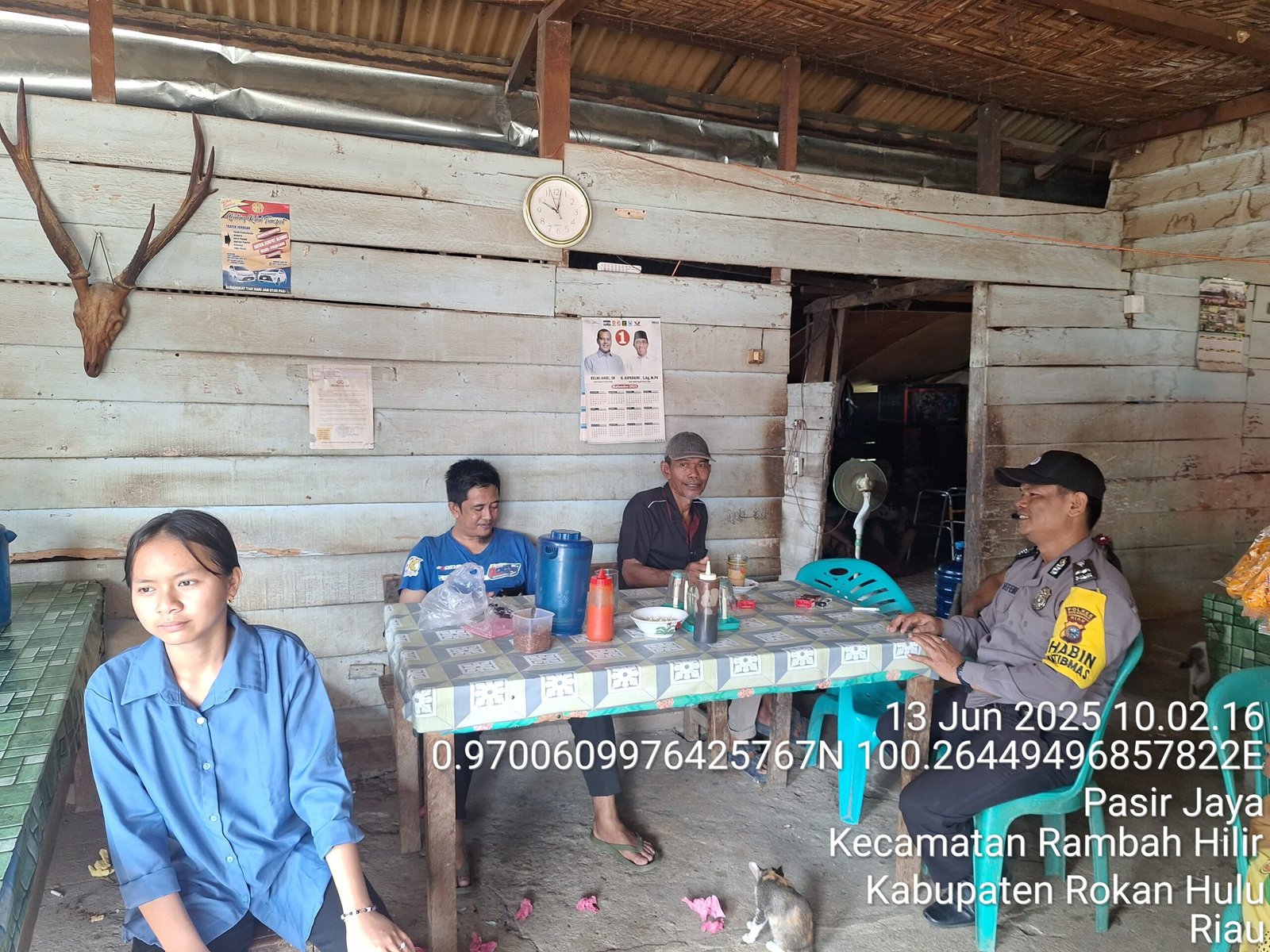 Kapolsek Rambah Hilir melalui Bhabinkamtibmas Aipda Mul Efendi, SH dan Banit IK Briptu Indra Gunawan Hrp, SH pada kesempatan ini menyambangi masyarakat Desa Pasir Jaya Kecamatan Rambah hilir.