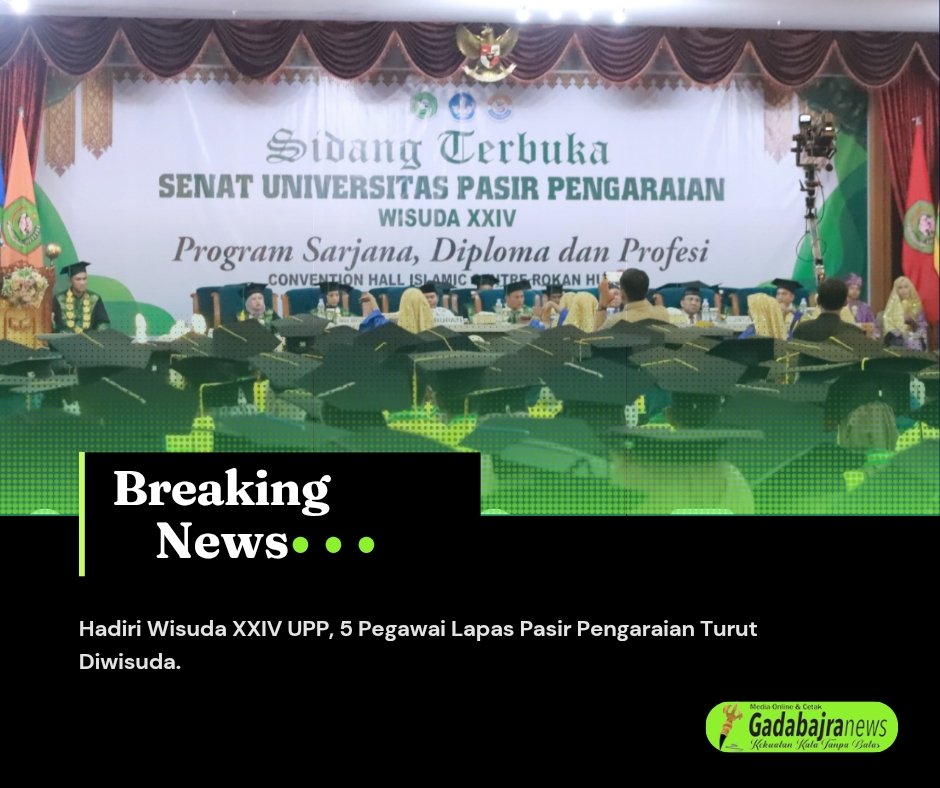 Rokan Hulu, gadabajranews.com – Lembaga Pemasyarakatan (Lapas) Kelas IIB Pasir Pengaraian menghadiri kegiatan Wisuda XXIV Program Sarjana, Diploma, dan Profesi Tahun 2026 yang diselenggarakan dalam Sidang Terbuka Senat Universitas Pasir Pengaraian (UPP) pada Rabu (29/04/2026) di Convention Hall Islamic Center Rokan Hulu.