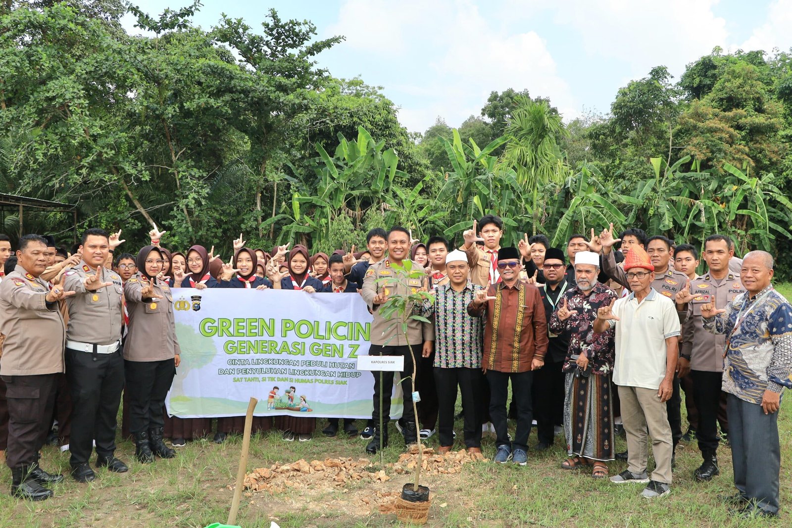 SIAK, GadabajraNews.com – Dalam upaya memperkuat kesadaran lingkungan sejak dini, Kepolisian Resor (Polres) Siak menggelar aksi nyata penanaman pohon di SMP Sains Tahfizh Islamic Center Siak, Kamis (23/4/2026). Kegiatan ini dilaksanakan bersempena dengan Peringatan Hari Bumi (Earth Day) Tahun 2026 sekaligus mengimplementasikan program unggulan Polri khususnya Polda Riau, yakni Green Policing.