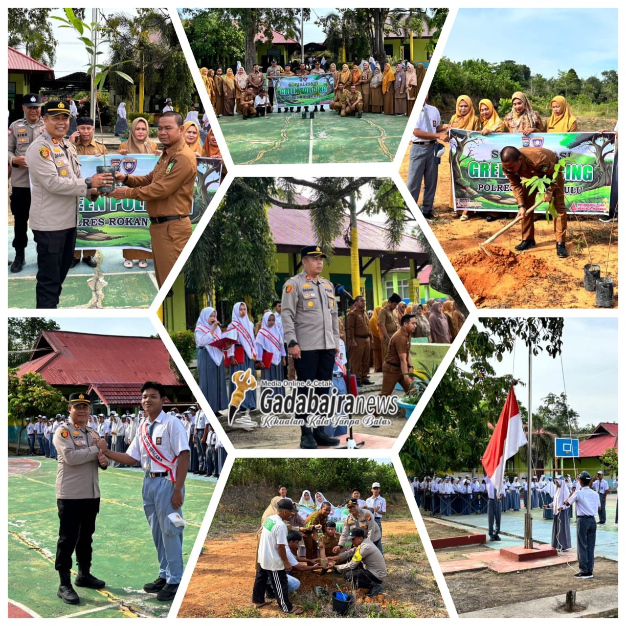 Kegiatan tersebut tidak hanya diisi dengan pesan-pesan moral kepada para pelajar, namun juga dilanjutkan dengan aksi nyata penanaman pohon sebagai bagian dari program Green Policing Polri.