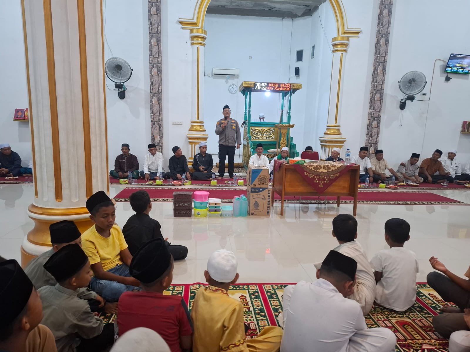 Acara diawali dengan pembukaan dan pembacaan ayat suci Al-Qur’an sebagai pembuka acara. Kemudian, Kepala Desa Rambah memberikan sambutan yang penuh makna, diikuti oleh sambutan dari Kapolsek Rambah Hilir. Salah satu momen penting adalah pemberian santunan kepada anak-anak yatim sebagai wujud kepedulian sosial dan keikhlasan berbagi.