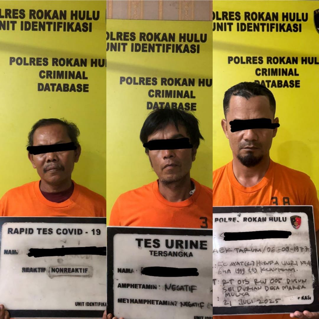 Dalam penangkapan ini, Polres Rokan Hulu telah menetapkan 3 tersangka, yakni pelaku inisial S (48 tahun) selaku pemilik kebun, adapun pelaku inisial S (57 Tahun), dan RR (40 tahun) selaku pekerja.