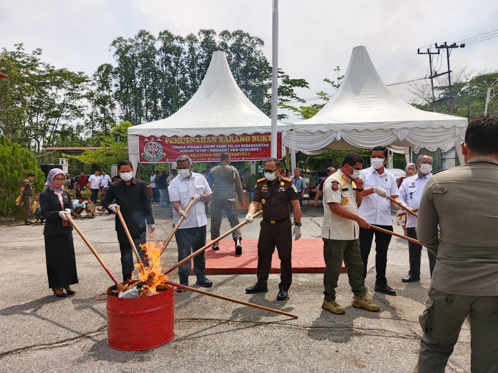 Kegiatan pemusnahan barang bukti ini dilakukan sebagai tindak lanjut atas putusan yang memiliki kekuatan hukum tetap. Barang bukti yang dimusnahkan langsung oleh Kajari Rokan Hulu bersama Bupati Rokan Hulu dan unsur Forkopimda lainnya, instansi terkait serta tamu lainnya yang meliputi berbagai jenis barang hasil tindak pidana umum.