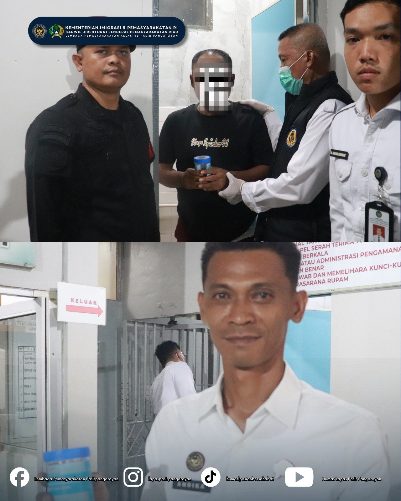 Kepala Kantor Wilayah Ditjenpas Riau, Maizar, bersama Kepala Lapas Kelas IIB Pasir Pangaraian, Efendi Parlindungan Purba, turut memantau jalannya kegiatan guna memastikan pelaksanaannya berjalan tertib dan sesuai ketentuan.