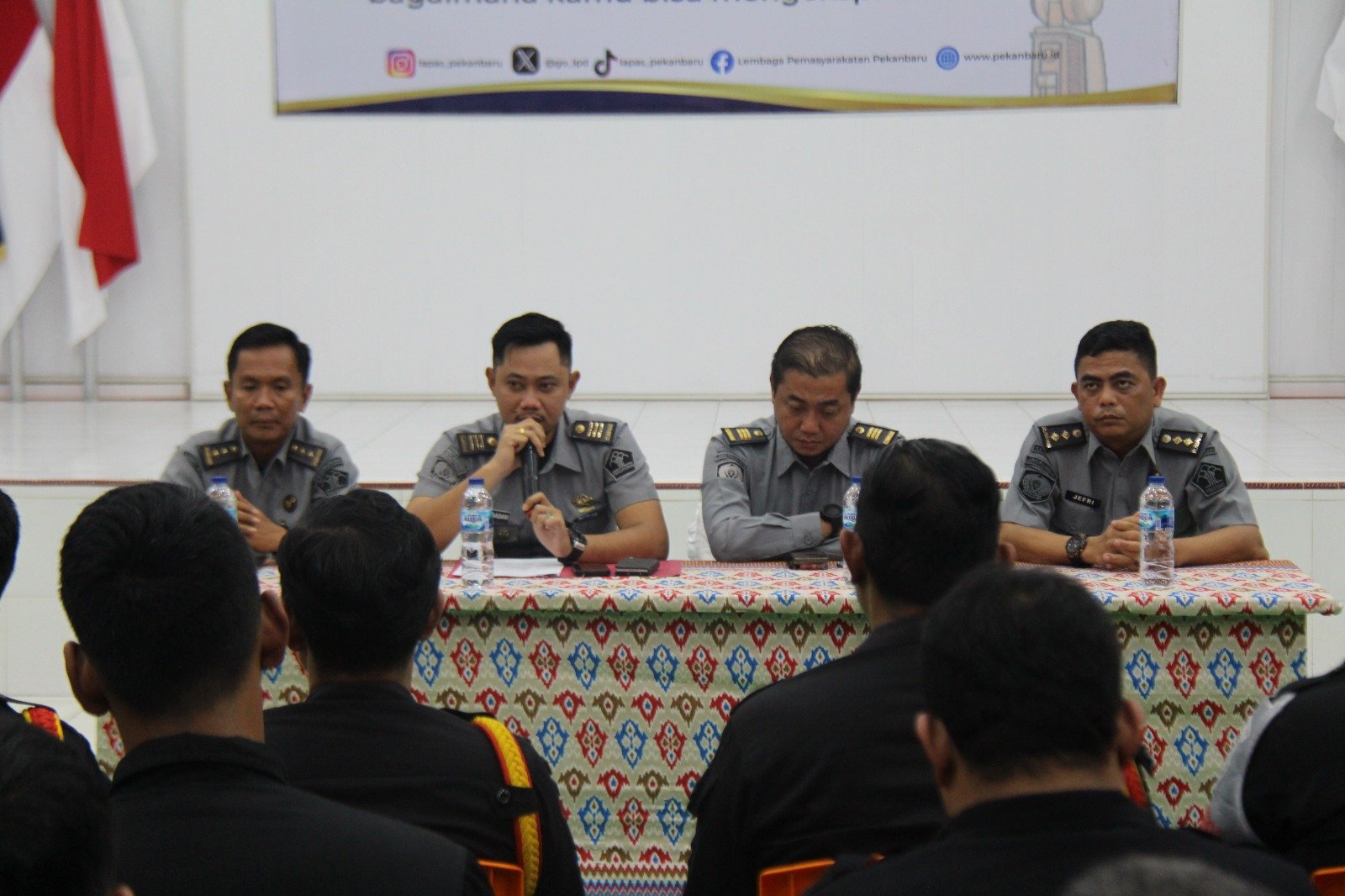 PEKANBARU, GadabajraNews.com — INFO_PAS – Jajaran pengamanan Lembaga Pemasyarakatan (Lapas) Kelas IIA Pekanbaru menggelar rapat internal yang dipimpin langsung Kepala Kesatuan Pengamanan Lapas (Ka. KPLP) yang baru, Febri Sadam, dan didampingi oleh Pejabat Struktural Lapas Pekanbaru, Selasa (03/06).
