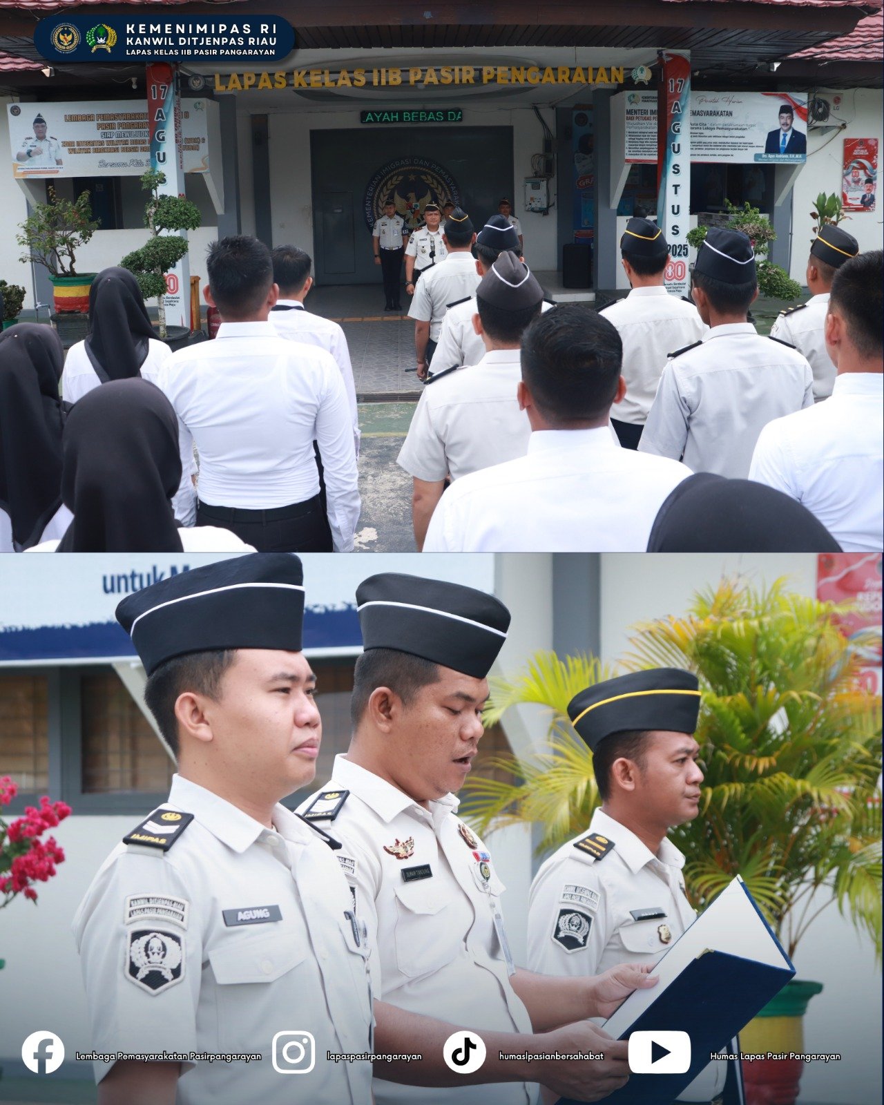 Kegiatan apel pagi yang diikuti oleh pejabat struktural, staf, dan peserta magang nasional ini dipimpin langsung oleh Kepala Lapas (Kalapas) Pasir Pangaraian, Efendi Parlindungan Purba. Dalam arahannya, Kalapas menekankan pentingnya menjaga integritas, kedisiplinan, serta tanggung jawab dalam pelaksanaan tugas sehari-hari.