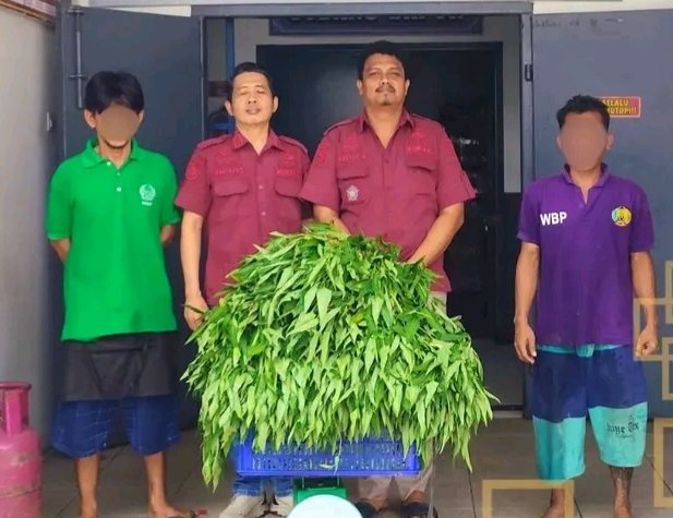 PEKANBARU, GadabajraNews.com Lembaga Pemasyarakatan (Lapas) Narkotika Kelas IIB Rumbai melaksanakan kegiatan panen kangkung di lahan terbatas yang terletak di area bimker Lapas Narkotika Rumbai, Kamis (7/8/2025). Kegiatan ini dilaksanakan oleh Kepala Subseksi Kegiatan Kerja dan petugas, bersama para Warga Binaan Pemasyarakatan (WBP) sebagai bentuk pembinaan dan pemberdayaan.