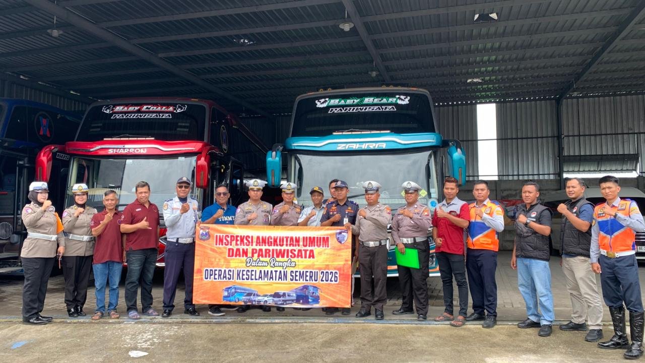 MADIUN, GadabajraNews.com – Dalam rangka mendukung pelaksanaan Operasi Keselamatan Semeru 2026 serta memastikan kesiapan angkutan umum menjelang arus mudik dan balik Lebaran 2026, Polres Madiun Kota bersama Tim Inspeksi Angkutan Umum Polda Jawa Timur menggelar ramp check dan pemeriksaan kesehatan pengemudi bus di PO Avicent, Jalan Basuki Rahmad, Kota Madiun, Jumat (13/2/2026) pukul 09.00 WIB.