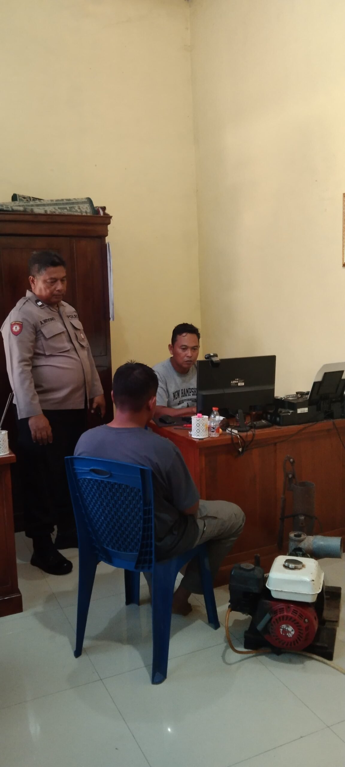 Berdasarkan keterangan saksi dan hasil penyelidikan Unit Reskrim, polisi akhirnya berhasil mengidentifikasi pelaku. Pada Rabu, 15 April 2026 sekitar pukul 11.00 WIB, petugas berhasil mengamankan RSC beserta barang bukti berupa satu unit mesin alkon pompa air.