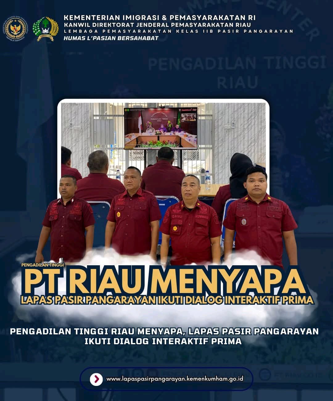 PASIR PENGARAIAN, GadabajraNews.com – Dalam rangka mendiskusikan isu-isu strategis dalam Praktik Peradilan, Kepala Lembaga Pemasyarakatan Kelas IIB Pasir Pangaraian, Efendi Parlindungan Purba bersama Kasi Binadik & Giatja, Sunu Istiqomah Danu, Kasubsi Registrasi dan Bimkemas, Wahyu Ananda dan staf mengikuti kegiatan Virtual Meet bertajuk “Pengadilan Tinggi Riau Menyapa”, yang digelar oleh Pengadilan Tinggi Riau dalam rangka dialog interaktif bertema PRIMA pada Kamis (26/6/2025).