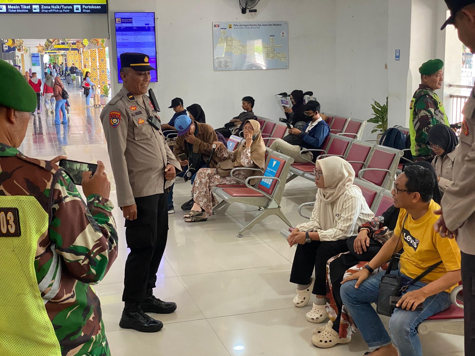 Stasiun kereta api merupakan salah satu objek vital yang memiliki potensi kerawanan gangguan kamtibmas, terutama saat arus mudik Lebaran. Oleh karena itu, personel gabungan yang terdiri dari TNI, Polri, Polsuska, serta tenaga kesehatan secara rutin melakukan patroli dan memberikan imbauan kepada penumpang agar selalu waspada terhadap barang bawaan.