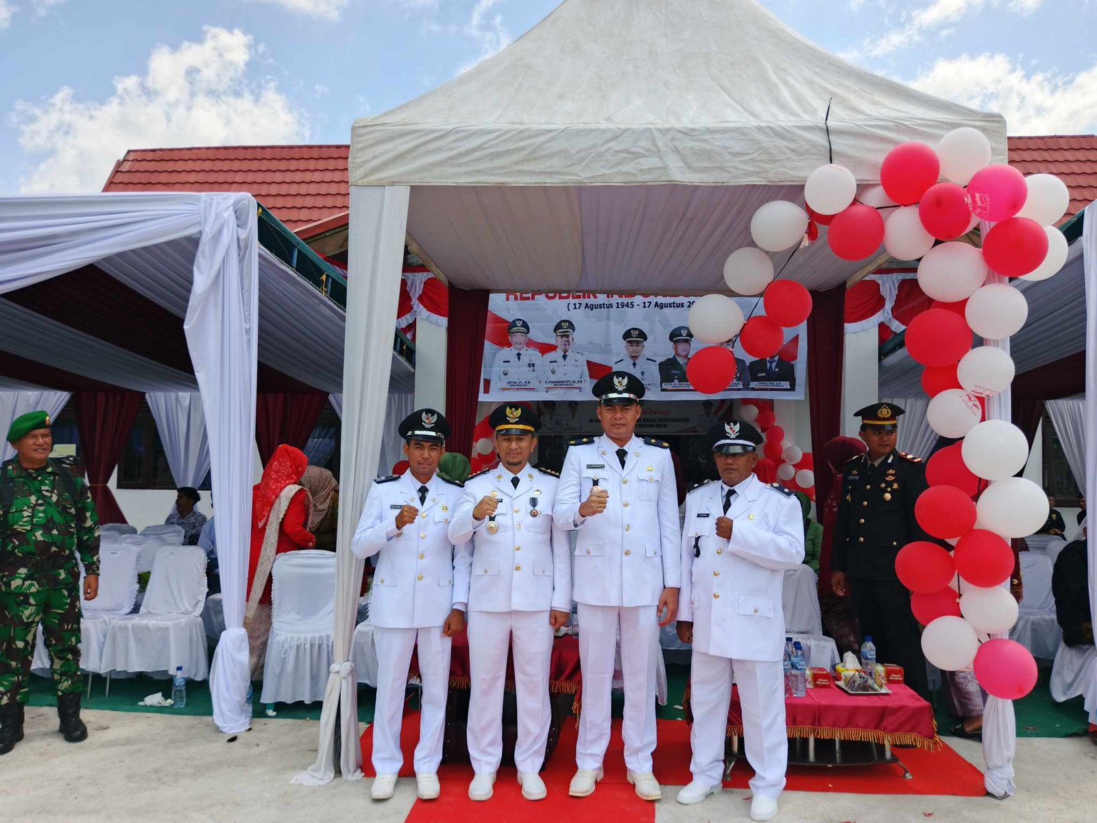 Upacara dipimpin langsung oleh Camat Bonai Darussalam, Elfitren Saputra, S.Kom., M.IP, sebagai inspektur upacara. Momen sakral ditandai dengan pembacaan teks Proklamasi oleh Ilham Marzuki, anggota DPRD Rokan Hulu dari Fraksi Golkar, serta pengibaran bendera Merah Putih oleh Pasukan Paskibraka kecamatan yang berlangsung penuh haru. Lagu Indonesia Raya bergema, diikuti hormat serentak seluruh peserta, menciptakan suasana penuh makna dan pengingat akan jasa para pahlawan bangsa.