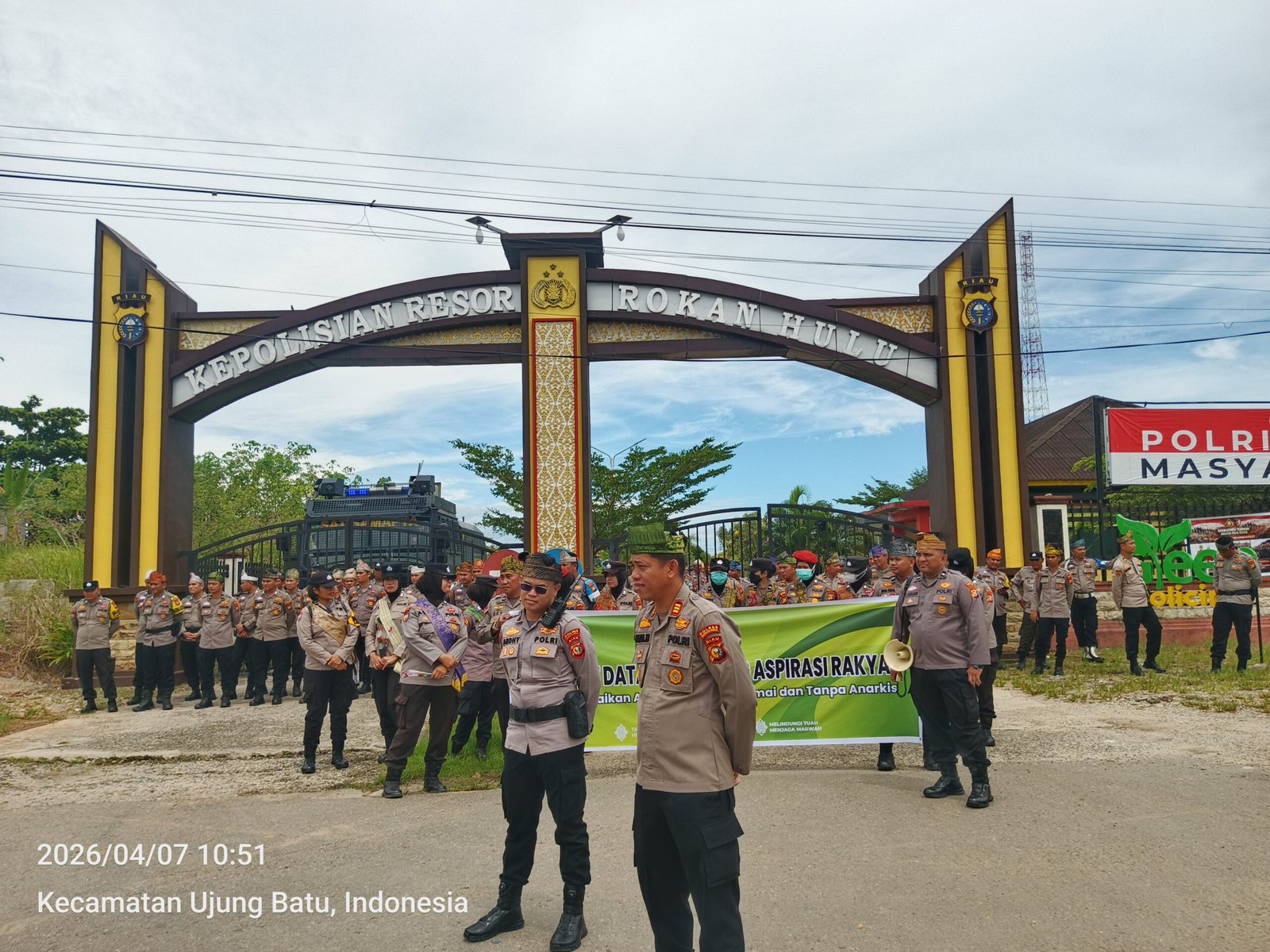 Sebanyak 338 personel gabungan telah disiagakan sejak pagi. Pimpinan apel pengamanan dilakukan langsung oleh Wakapolres Rokan Hulu, Kompol I Made Juni Artawan, didampingi Kabag Ops Kompol Ikhwan Widarmono, guna memastikan situasi tetap kondusif sejak dini.Sekitar pukul 10.40 WIB, rombongan massa yang berjumlah sekitar 300 orang tiba di lokasi menggunakan armada bus dan minibus. Mereka membawa berbagai atribut perjuangan dan menyuarakan tuntutan utama, yaitu pengakuan hak ulayat tanah leluhur serta penolakan keras terhadap tindakan kriminalisasi yang menimpa tokoh adat.