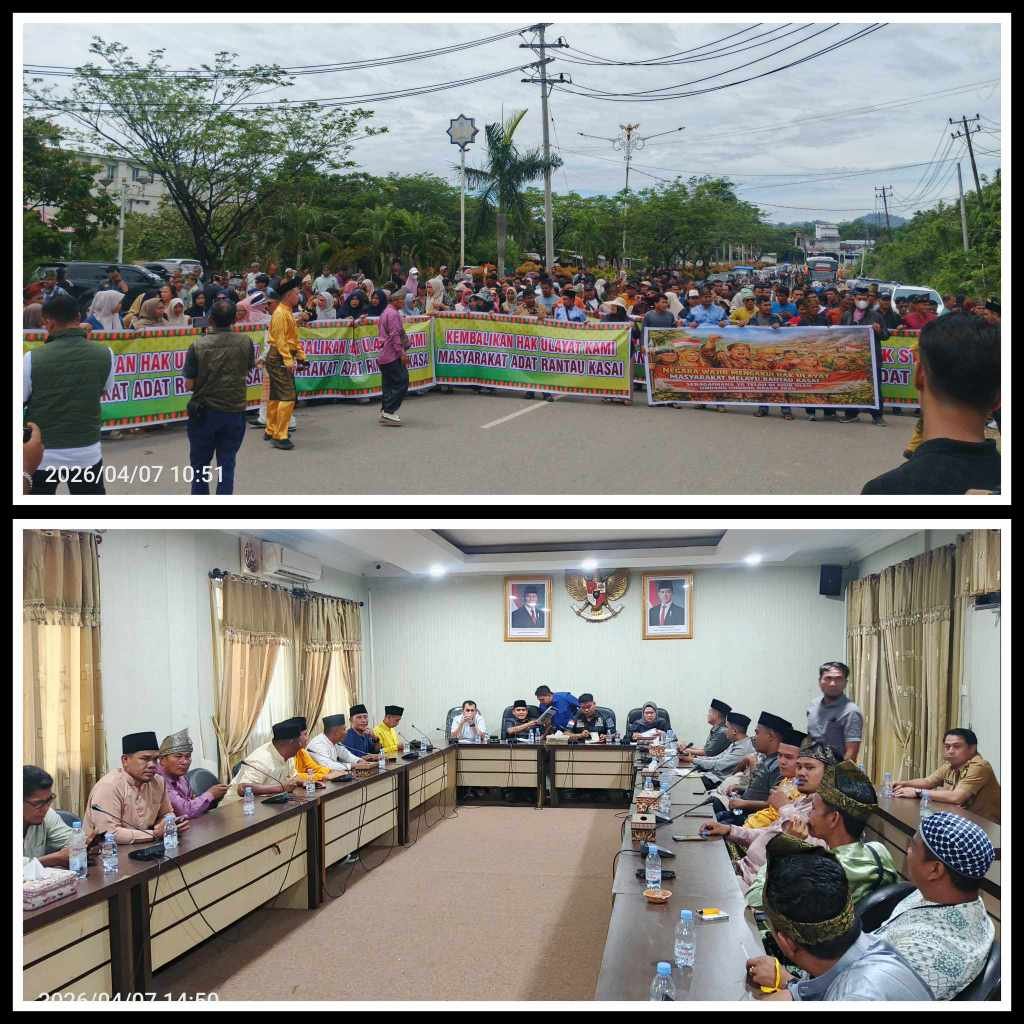Rokan Hulu,(Riau) Gadabajranews.com – Suara masyarakat adat kembali terdengar lantang. Ratusan warga yang tergabung dalam Persukuan Melayu Rantau Kasai (PMRK) menggelar demonstrasi damai di Mapolres Rokan Hulu dan Kantor DPRD Kabupaten setempat, Selasa (7/4/2026). Seluruh rangkaian kegiatan berjalan tertib, aman, dan terkendali berkat pengamanan maksimal dari aparat kepolisian.