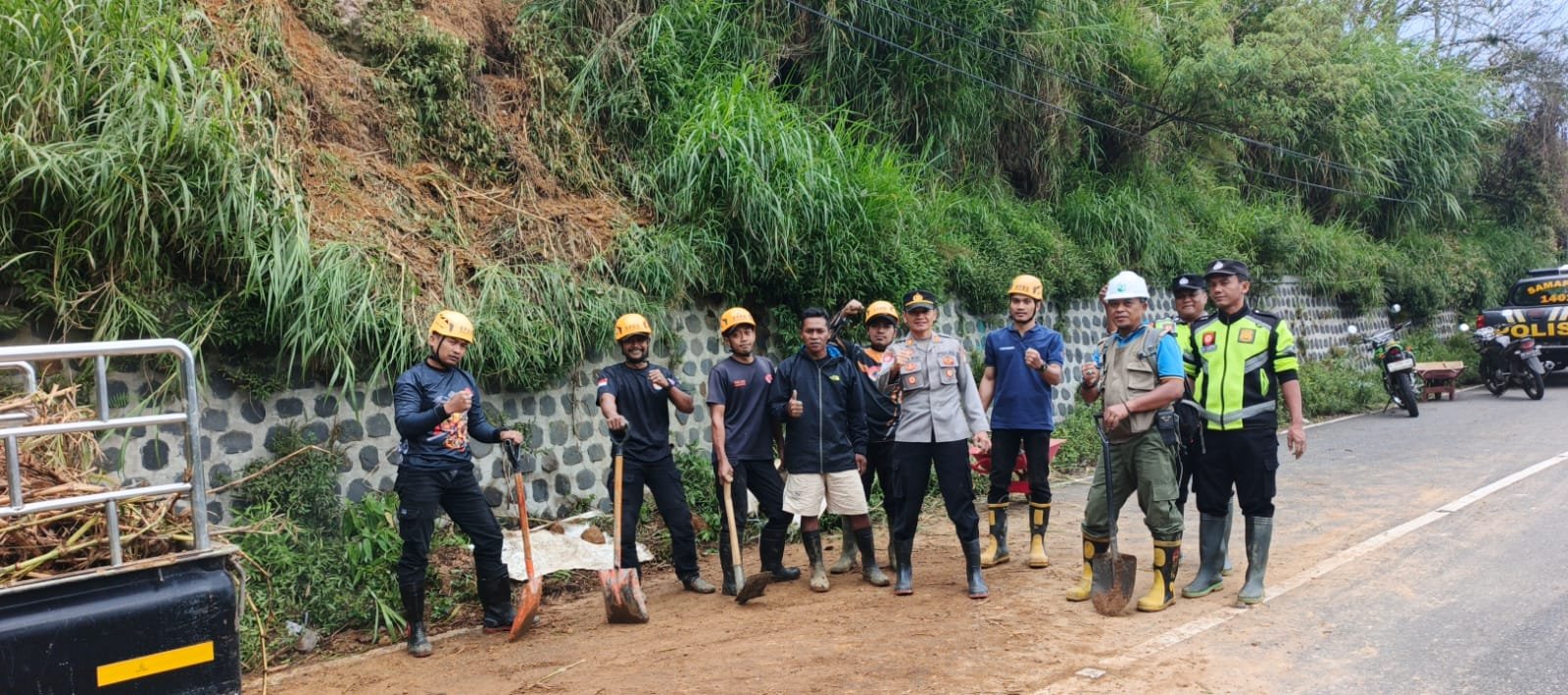 “Kami mengimbau kepada masyarakat untuk tetap berhati-hati saat melintas di jalur rawan longsor, terutama saat hujan deras. Apabila mengetahui adanya potensi bencana atau kejadian darurat, segera laporkan kepada pihak Kepolisian atau instansi terkait agar dapat segera ditangani,” tegasnya.