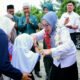 Terlihat puluhan personel mengikuti latihan dengan penuh semangat, mempraktikkan berbagai gerakan Dalmas menggunakan tameng.