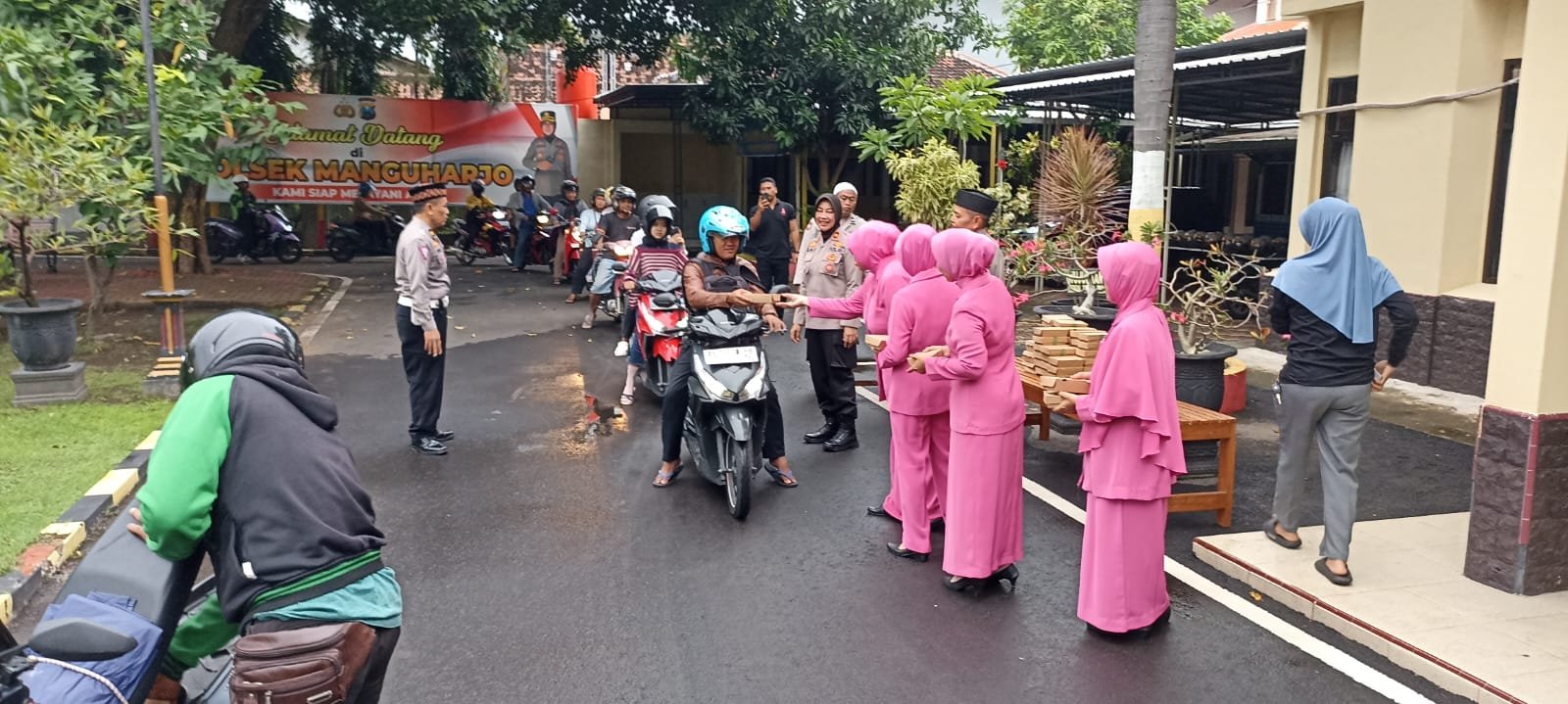 Sebanyak kurang lebih 200 paket takjil dibagikan kepada para pengguna jalan yang melintas di depan Mapolsek. Paket tersebut berisi nasi, snack, dan kolak untuk membantu masyarakat yang sedang dalam perjalanan agar dapat berbuka puasa tepat waktu.