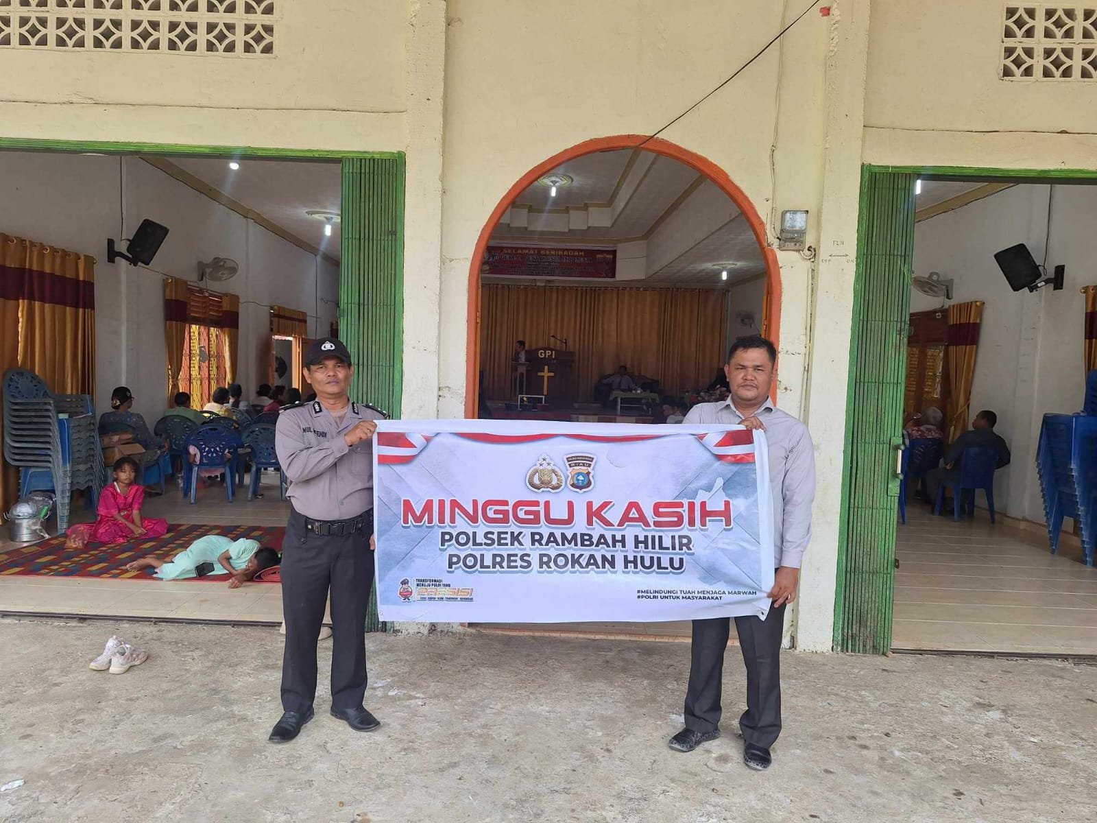 Rambah Hilir,(Rohul) Gadabajranews.com – Pendeta dan jemaat Gereja GPI Kumu Baru Desa Rambah Kecamatan Rambah Hilir mengapresiasi kegiatan Minggu Kasih yang dilaksanakan oleh Polsek Rambah Hilir pada hari Minggu, 7 September 2025.