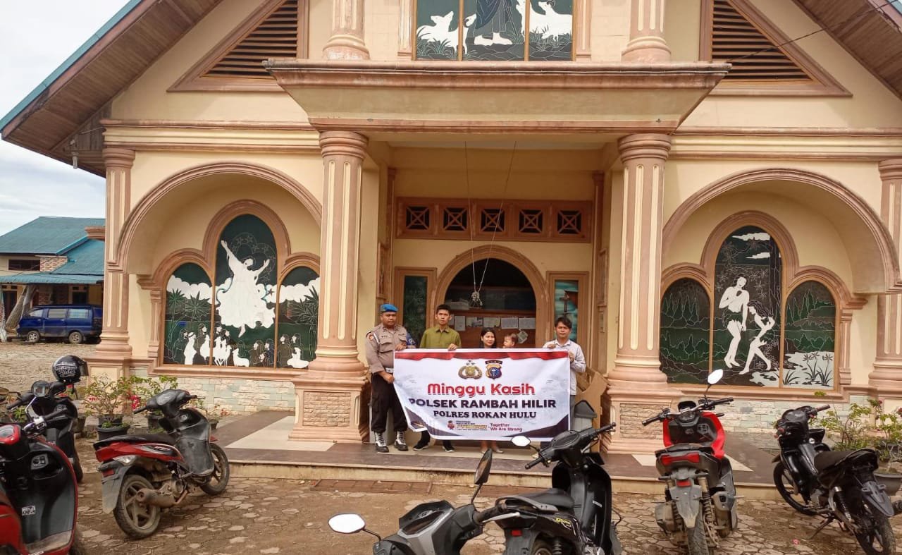 Rambah Hilir,(Riau) Gadabajranews.com – Dalam rangka mempererat hubungan antara Polri dan masyarakat, Polsek Rambah Hilir Polres Rokan Hulu kembali melaksanakan kegiatan Minggu Kasih pada Minggu (26/10/2025) pukul 09.30 WIB hingga 10.00 WIB, bertempat di Gereja HKBP Estomihi Simpang D Desa Rambah, Kecamatan Rambah Hilir.
