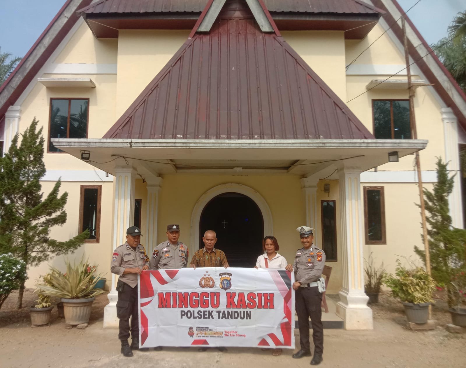 Tandun,(Rohul) Gadabajranews.com – Dalam rangka mempererat hubungan antara Polri dan masyarakat, Polsek Tandun melaksanakan kegiatan Minggu Kasih bersama jemaat Gereja HKBP Taman Baru dan Gereja GBIS Bukit Zaitun di Desa Puo Raya, Kecamatan Tandun, Kabupaten Rokan Hulu.