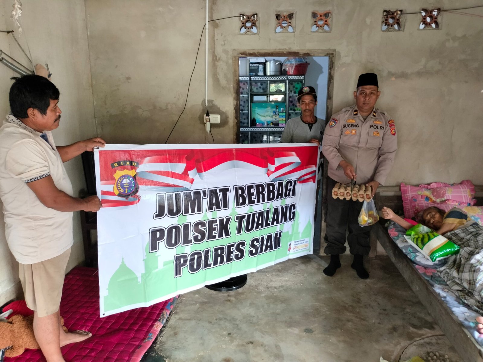 PERAWANG, GadabajraNews.com — Kepolisian Sektor Tualang, Kabupaten Siak, Provinsi Riau, kembali menunjukkan kepedulian sosialnya melalui program rutin Jumat Berbagi. Pada Jumat (13/6/25), jajaran Polsek Tualang menyalurkan bantuan sembako kepada warga kurang mampu yang tengah menghadapi masalah kesehatan serius.