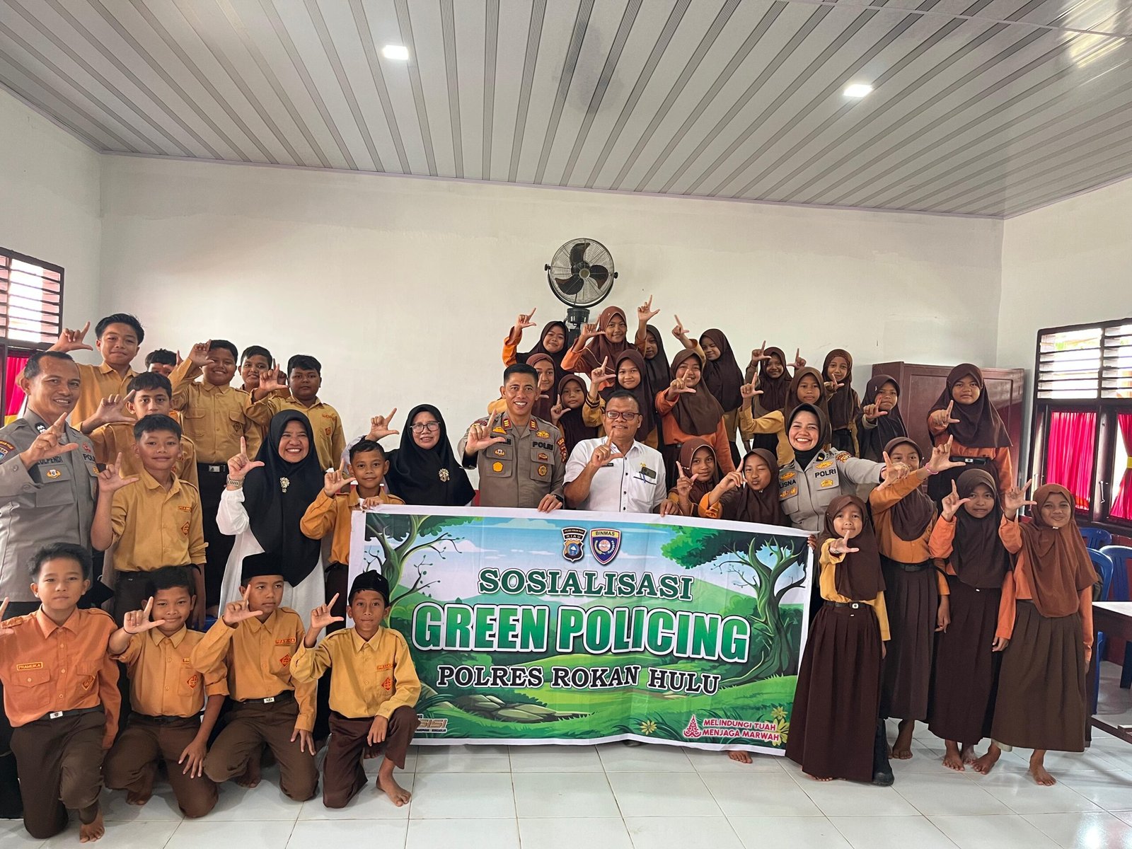 Dalam kesempatan tersebut, Kasat Binmas dan KBO Sat Binmas menyampaikan sosialisasi tentang program Kapolda Riau “Green Policing” yang menekankan pentingnya menanam pohon sebagai bentuk menjaga kelestarian lingkungan. Program ini juga sejalan dengan semangat Polres Rokan Hulu, “Melindungi Tuah, Menjaga Marwah,” yang berkomitmen untuk mewariskan alam yang lestari bagi generasi mendatang.