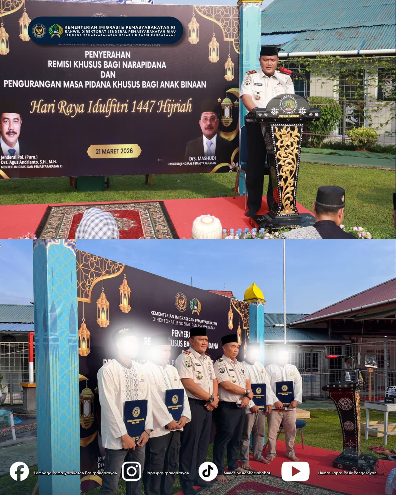 Sebanyak 815 Warga Binaan Lapas Pasir Pangaraian Terima Remisi Lebaran Usai Shalat Id