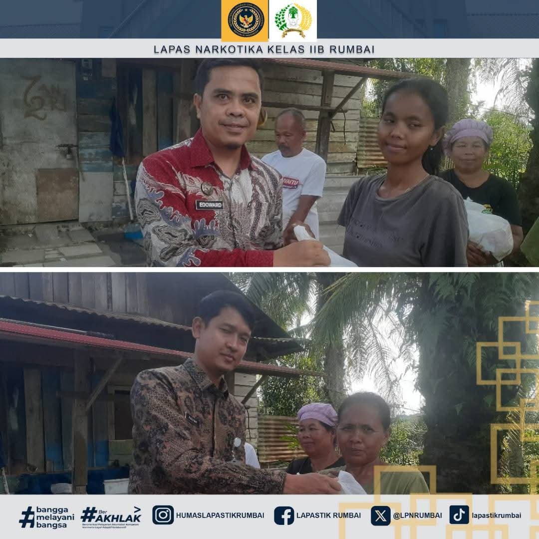 Kalapas Narkotika Rumbai, Reinhards Indra Pitoy diwakili oleh Kepala Seksi Administrasi Keamanan dan Ketertiban, Edoward Nikelini Bangun, Kepala Seksi Binadik dan Giatja, Ralphy Prasetyo dan Kepala Subbagian Tata Usaha, Ade Kurniawan didampingi jajaran pejabat stuktural eselon V dan staf, melakukan pembagian paket sembako secara door to door di sekitar lingkungan Lapas Narkotika Rumbai.
