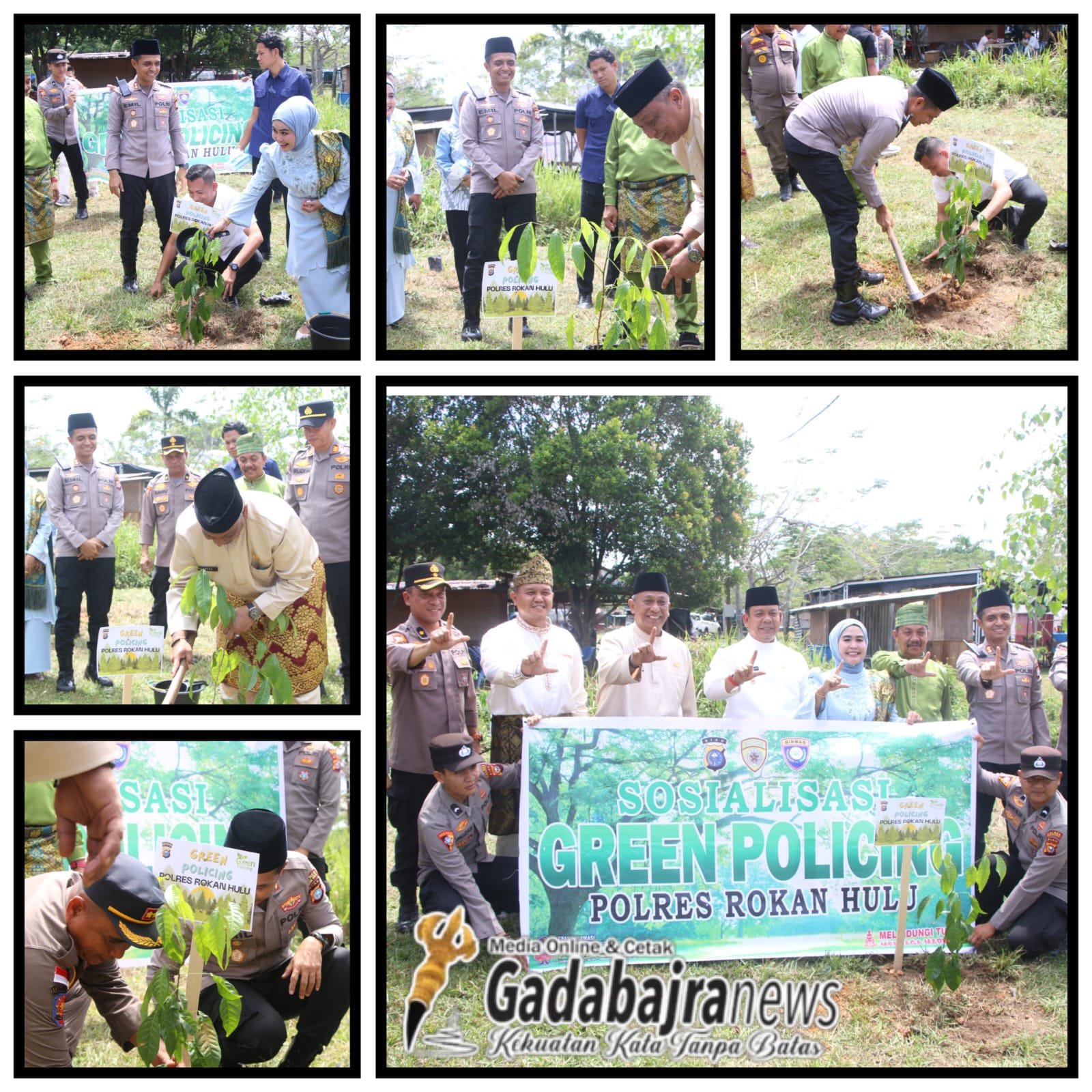 Rokan Hulu,(Riau) Gadabajranews.com – Momentum Musabaqah Tilawatil Qur’an (MTQ) Ke-XXV Kabupaten Rokan Hulu dimanfaatkan Polres Rokan Hulu untuk menguatkan program strategis Kapolda Riau melalui kegiatan Sosialisasi Green Policing serta penanaman bibit pohon bersama Forkopimda. Kegiatan yang berlangsung pada Senin (17/11/2025) di Astaka Purna MTQ Desa Pematang Berangan, Kecamatan Rambah, ini menjadi wujud nyata kepedulian kepolisian terhadap lingkungan.