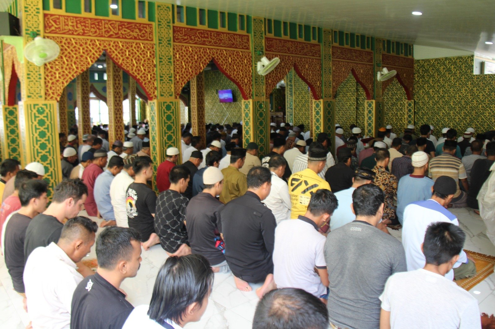 Gadabajranews.com — PEKANBARU, INFO_PAS – Ratusan Warga Binaan Pemasyarakatan (WBP) Lembaga Pemasyarakatan (Lapas) Kelas IIA Pekanbaru serta para Petugas yang beragama Islam tampak khusyu mengikuti Sholat Jumat berjamaah di Masjid At-Taubah, Jumat (02/05).