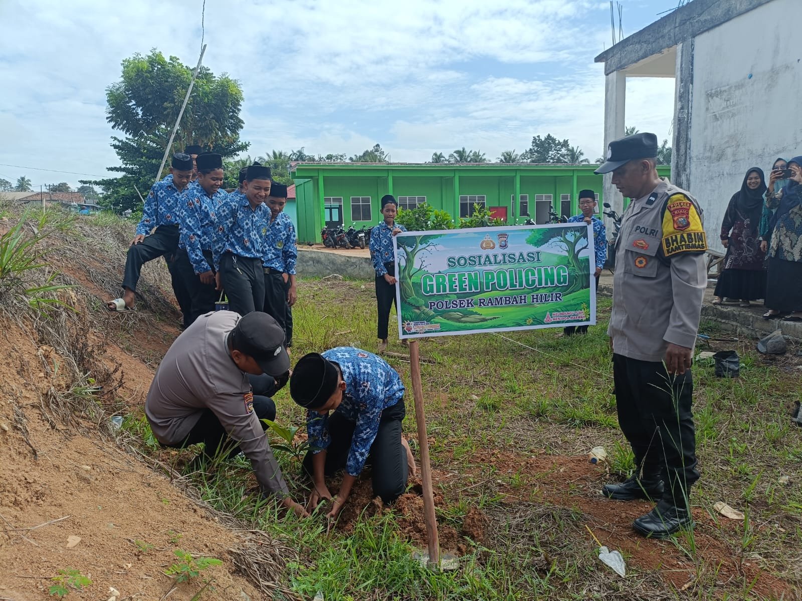 Rambah Hilir,(Rohul) Gadabajranews.com – Dalam upaya memperkuat kepedulian terhadap lingkungan dan meningkatkan kesadaran siswa tentang pentingnya menjaga alam, Dalam rangka mendukung program Kapolda Riau tentang penghijauan dengan tema Melindungi Tuah, Menjaga Marwah, personel Polsek Rambah Hilir menggelar kegiatan Green Policing di MTS Matlabul Ulum, Desa Rambah Muda, Selasa pagi pukul 09.00 WIB.