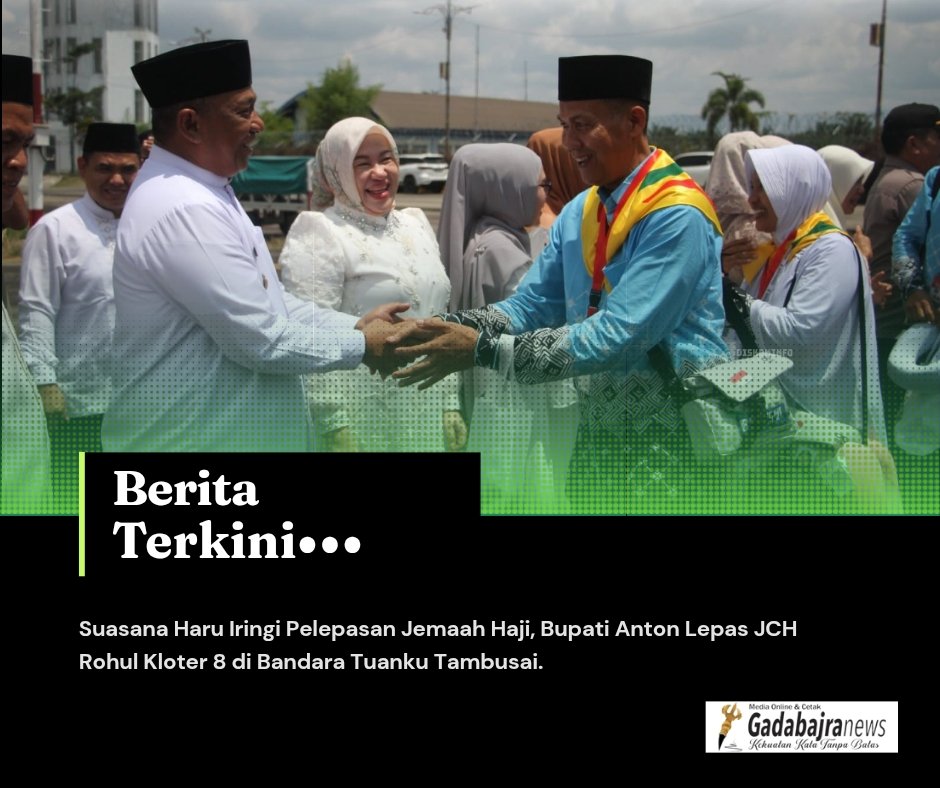 Rokan Hulu, gadabajranews.com – Bupati Rokan Hulu Anton, ST, MM, didampingi Ketua TP PKK Rohul, dr. Yeni Dwi Putri, secara resmi melepas keberangkatan Jemaah Calon Haji (JCH) Kabupaten Rokan Hulu yang tergabung dalam Kloter 8. Pelepasan ini dilakukan di Bandara Tuanku Tambusai menuju Bandara Hang Nadim, Batam, pada Selasa (28/4/2026).