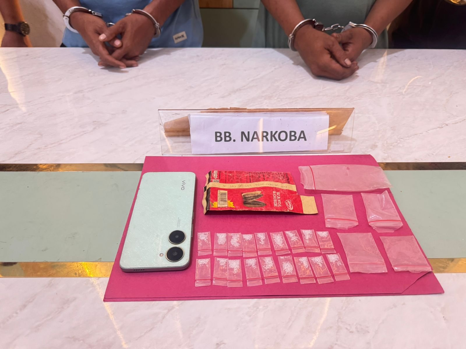 Atas perbuatannya, para tersangka dijerat dengan Pasal 114 ayat (1) Undang-Undang RI Nomor 35 Tahun 2009 tentang Narkotika, juncto ketentuan pidana dalam KUHP terbaru, dengan ancaman hukuman pidana penjara.