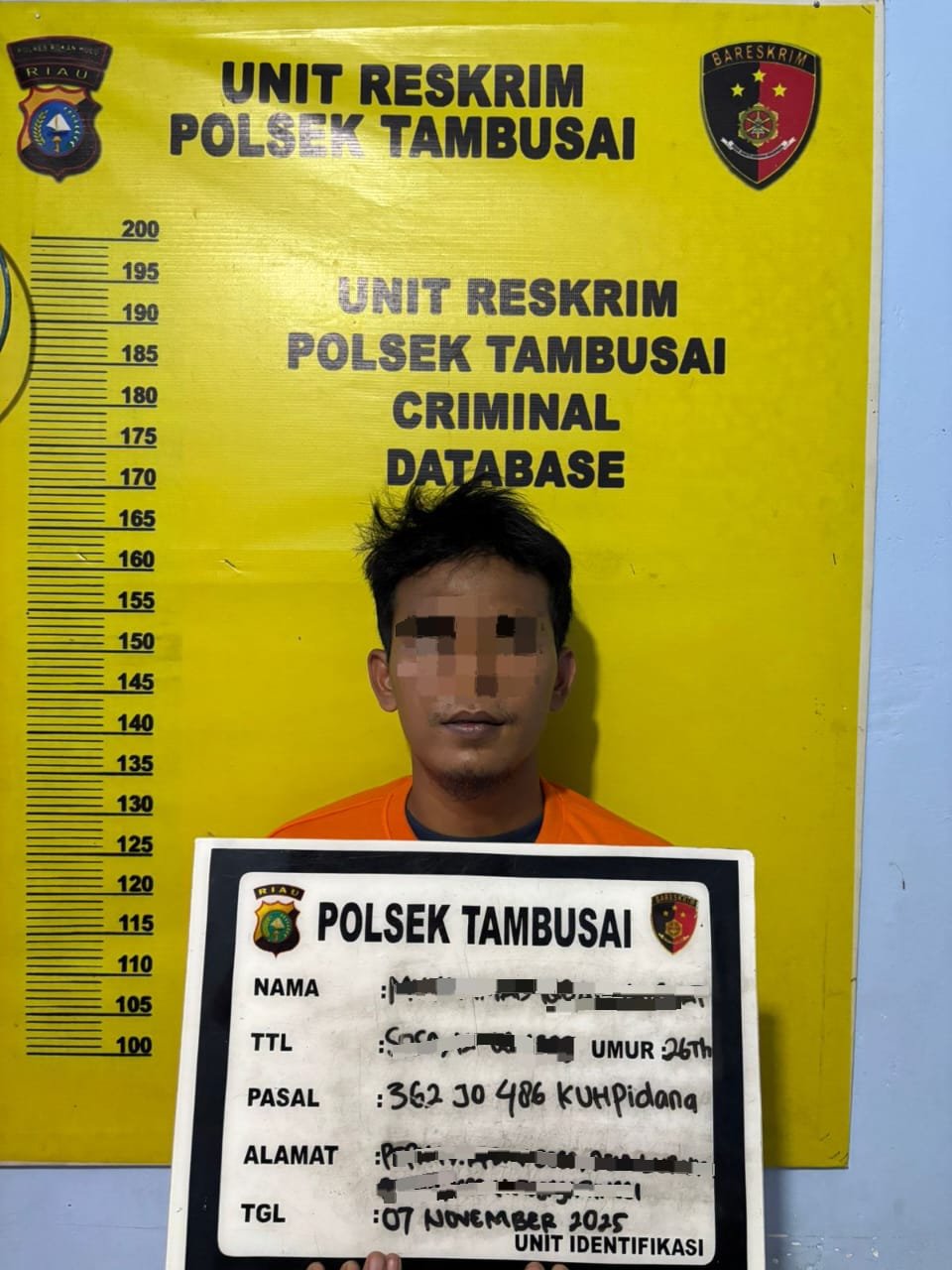 Kapolsek Tambusai IPTU Kristian Hadinata Sirait, S.E., mengatakan penangkapan ini berawal dari laporan warga berinisial SS (45), warga Desa Tambusai Barat, yang kehilangan sepeda motornya saat sedang melakukan transaksi di warung Brilink pada Kamis (6/11/2025) siang.