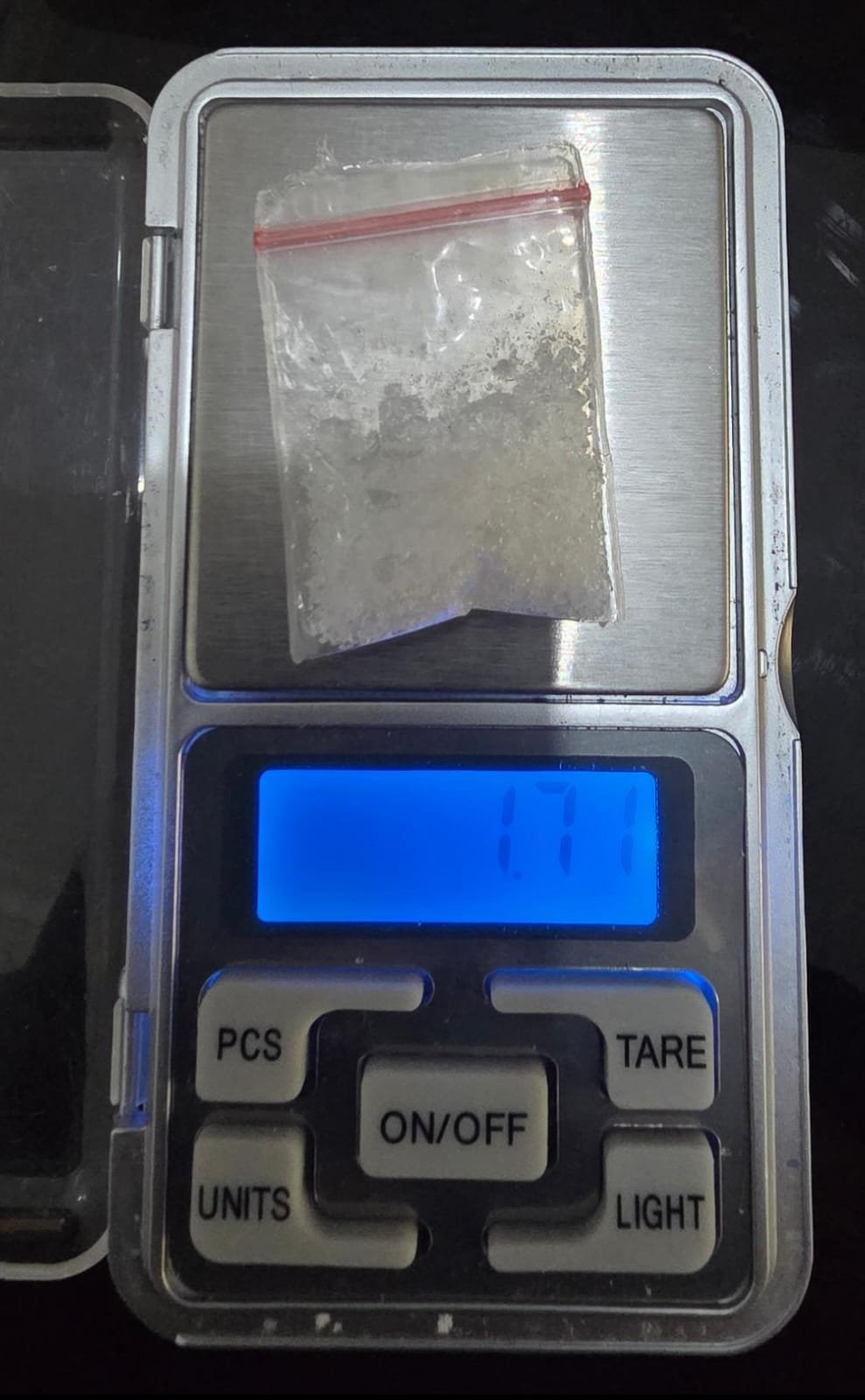 Dari hasil penggeledahan, polisi menemukan satu paket narkotika jenis sabu yang dibungkus plastik klip bening, satu unit telepon genggam merek Realme warna silver, serta satu sendok kecil yang terbuat dari sedotan plastik hitam. Total berat kotor sabu yang diamankan mencapai 1,71 gram.