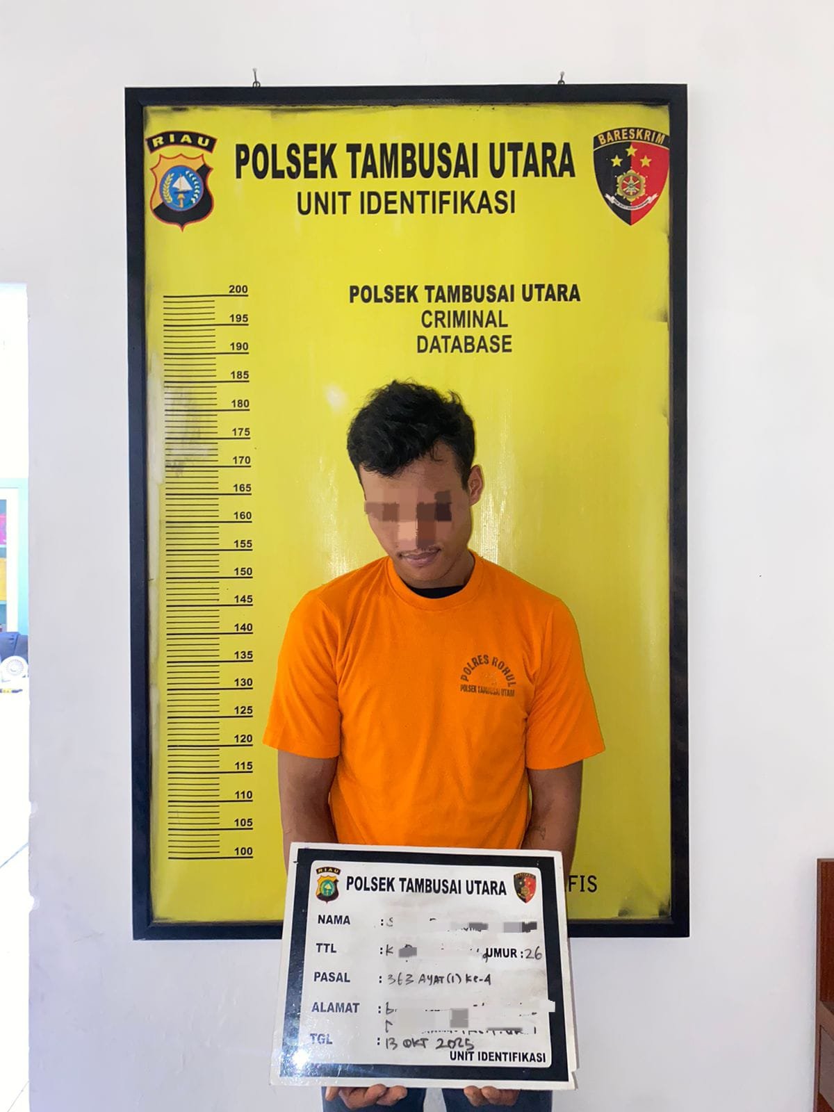 Kapolsek Tambusai Utara, AKP Tony Prawira, S.Trk., S.I.K., M.H., memerintahkan Kanit Reskrim IPDA Rahmat Sandra, S.H., M.H., beserta anggota unit Reskrim untuk melakukan penyelidikan, sehingga pelaku S.P.A (26 tahun) berhasil diamankan dan dibawa ke Mapolsek Tambusai Utara untuk proses hukum lebih lanjut.