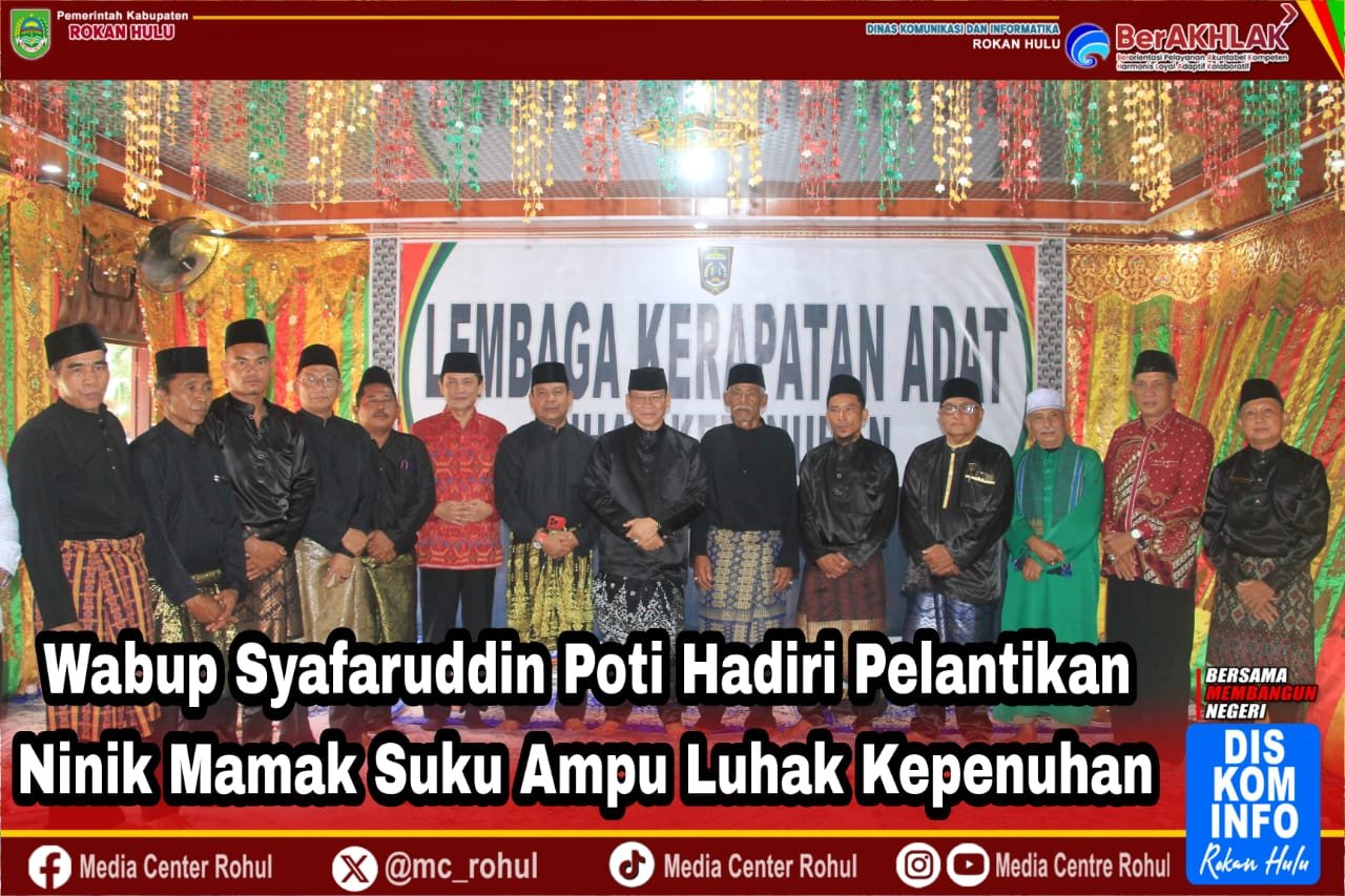 Kepenuhan,(Rohul) Gadabajranews.com – Wakil Bupati Rokan Hulu (Rohul) H. Syafaruddin Poti, S.H, M.M hadiri pelantikan Ninik Mamak Suku Ampu di Luhak Kepenuhan, Kecamatan Kepenuhan Sabtu (15/11/2025).